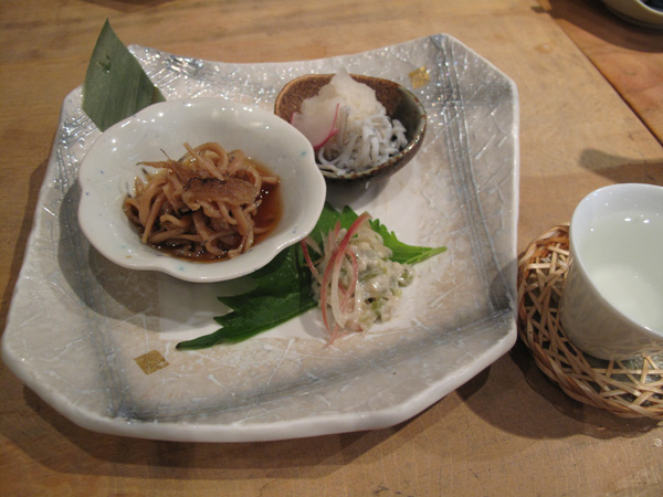 しらすを煮たのとおろしに和えたもの、どちらもお酒がすすみます